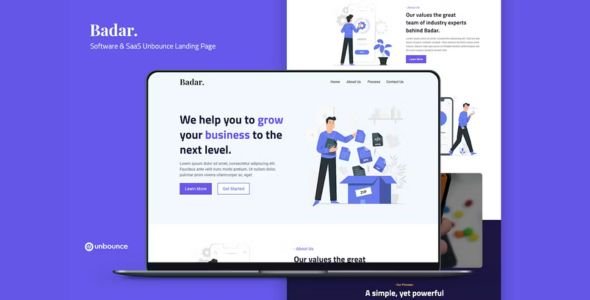 Badar is a creative onepage responsive landing page template for many purposes, it could be used as a Software, SaaS, App, Product, Startup, Company, Design studio, business or websites. Create high conversion landing pages in minutes!