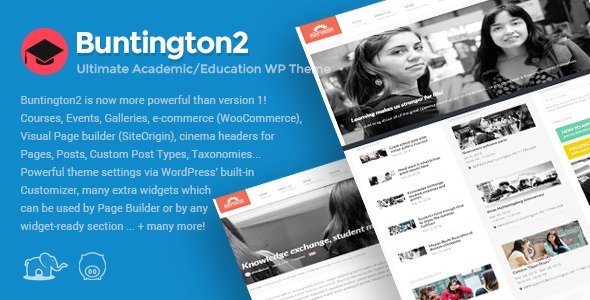 Buntington2 – academic – school – university – education WordPress theme. Ultimate solution for any type of school, education or a non-profit organization. It was built on top of Underscore starter theme, relies on SiteOrigin’s Page Builder (it’s completely free!), and Kirki Customizer.